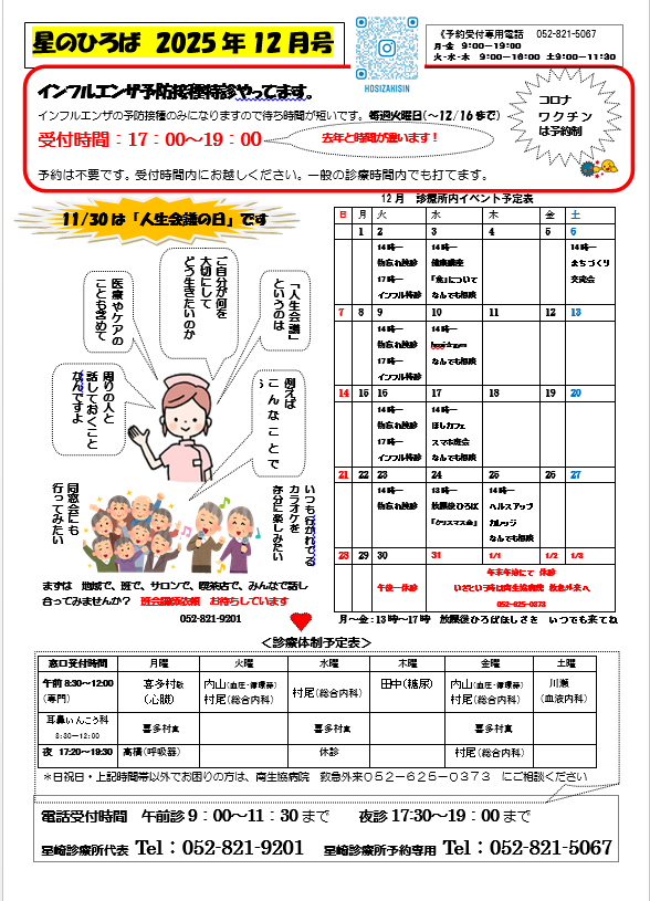 星崎診療所 星崎診療所はこちら▶ TOP > 星崎診療所 > ほしざきだより12月号 年末年始営業のごあんない 2025/12/16 ほしざきだより12月号 年末年始営業のごあんない 年末年始営業のご案内 12月30日(火)午前中まで営業 年明け1月5日(月)より営業となります 一覧に戻る Calendar 12月 2025 月 火 水 木 金 土 日 1234567 891011121314 15161718192021 22232425262728 293031 « 11月 Recent Posts ほしざきだより12月号 年末年始営業のごあんない (no title) たから診療所 かわら版 12月号 年末年始の診療体制のおしらせ 2025年度 富木島診療所で受けられるがん検診一覧 Archives 2025年12月 2025年11月 2025年10月 2025年9月 2025年8月 2025年7月 2025年6月 2025年5月 2025年4月 2025年3月 2025年2月 2025年1月 2024年12月 2024年11月 2024年10月 2024年9月 2024年8月 2024年7月 2024年6月 2024年5月 2024年4月 2024年3月 2024年2月 2024年1月 2023年12月 2023年11月 2023年10月 2023年9月 2023年8月 2023年7月 2023年6月 2023年5月 2023年4月 2023年3月 2023年2月 2023年1月