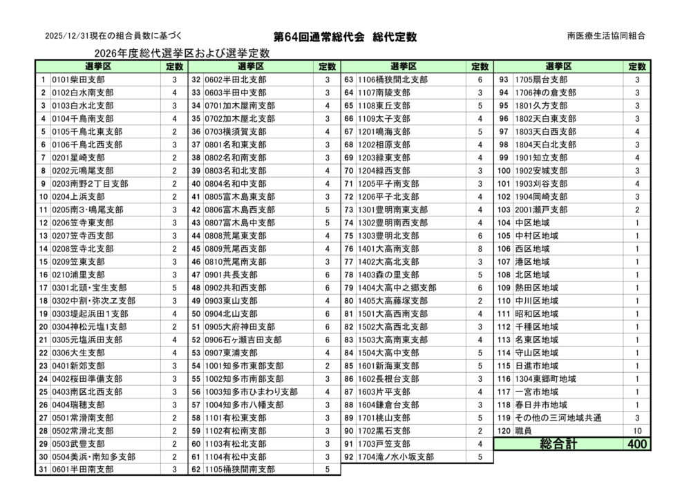 お知らせ TOP > お知らせ, 電子公告 > 2026年度 選挙区及び総代選挙定数 2026年1月31日 2026/01/31 2026年度 選挙区及び総代選挙定数 2026年1月31日 << 前の記事へ 一覧に戻る 次の記事へ >> カレンダー 2026年2月 月 火 水 木 金 土 日 1 2345678 9101112131415 16171819202122 232425262728 « 1月 最近の投稿 2026年度 第64回通常総代会公告 2026年1月31日 2026年度 総代選挙公告 2026年1月31日 2026年度 選挙区及び総代選挙定数 2026年1月31日 1月 介護事業所空き枠情報 12月 介護事業所空き枠情報 アーカイブ 2026年1月 2025年12月 2025年11月 2025年9月 2025年8月