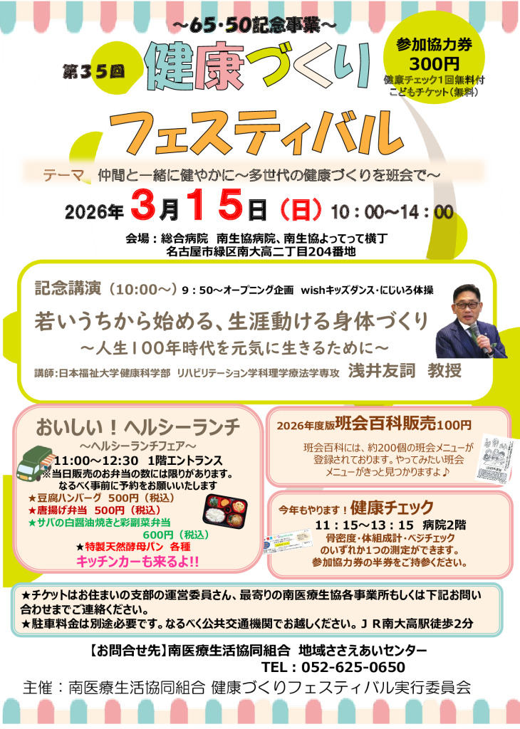 お知らせ TOP > お知らせ > 2026年度健康づくりフェスティバルご案内 2026/02/16 2026年度健康づくりフェスティバルご案内 << 前の記事へ 一覧に戻る カレンダー 2026年2月 月 火 水 木 金 土 日 1 2345678 9101112131415 16171819202122 232425262728 « 1月 最近の投稿 2026年度健康づくりフェスティバルご案内 2026年度 第64回通常総代会公告 2026年1月31日 2026年度 総代選挙公告 2026年1月31日 2026年度 選挙区及び総代選挙定数 2026年1月31日 1月 介護事業所空き枠情報 アーカイブ 2026年2月 2026年1月 2025年12月 2025年11月 2025年9月