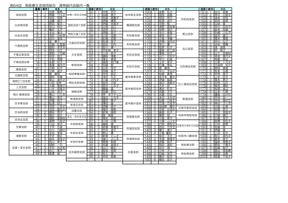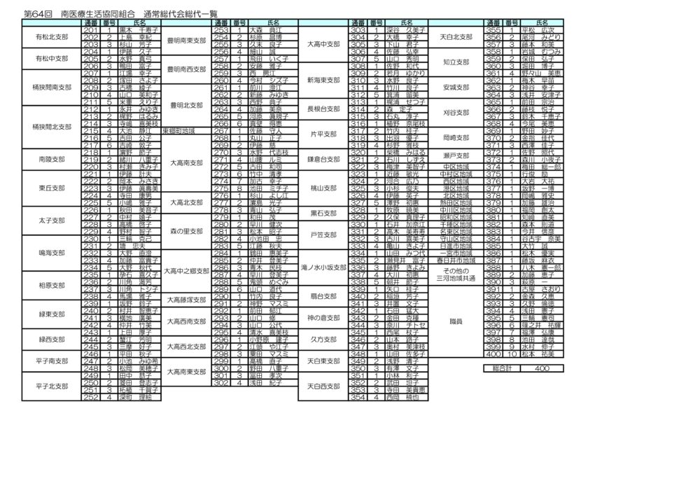 お知らせ TOP > お知らせ, 電子公告 > 第64回南医療生活協同組合通常総代会総代一覧(訂正版) 2026/04/18 第64回南医療生活協同組合通常総代会総代一覧(訂正版) << 前の記事へ 一覧に戻る カレンダー 2026年4月 月 火 水 木 金 土 日 12345 6789101112 13141516171819 20212223242526 27282930 « 3月 最近の投稿 第64回南医療生活協同組合通常総代会総代一覧(訂正版) 健康の友3月号 健康の友 2月号 健康の友 1月号 2026年度健康づくりフェスティバルご案内 アーカイブ 2026年4月 2026年3月 2026年2月 2026年1月 2025年12月
